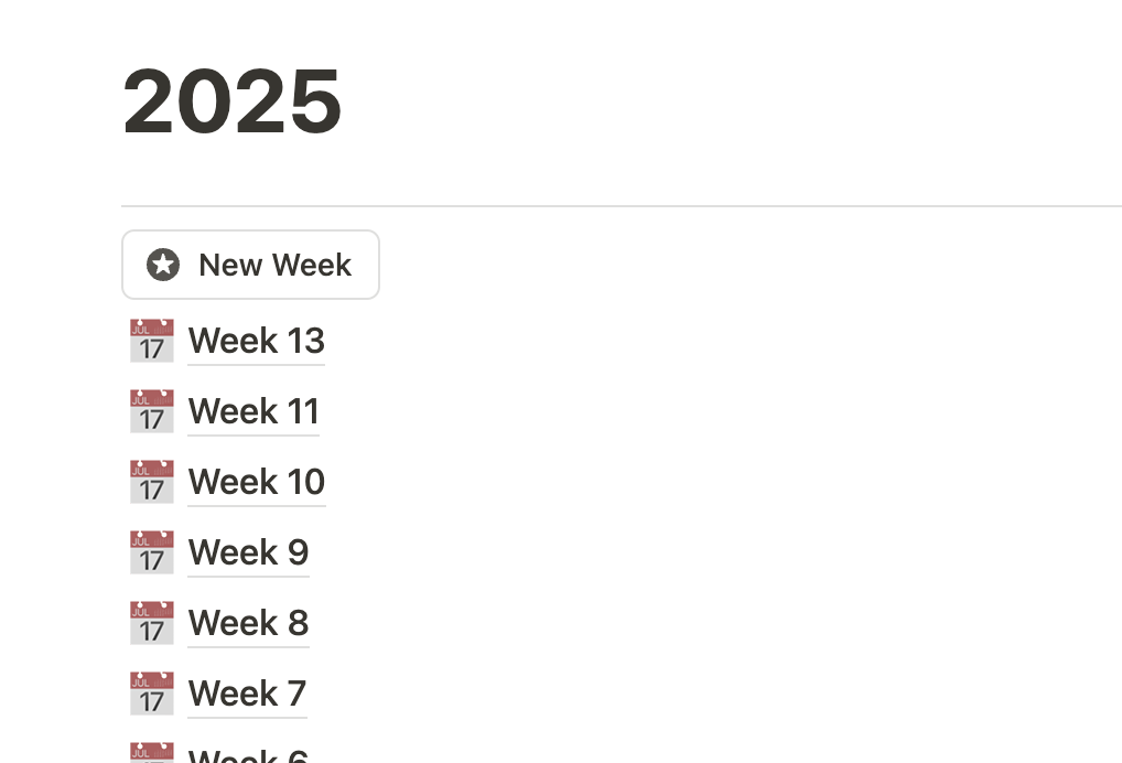 Il primo utilizzo che ne faccio è di usarlo come planner in cui segno ogni giorno cosa fare, le riunioni da seguire ed eventuali scadenze. Grazie alla funzionalità “Crea un bottone” mi basta fare un click sul bottone New Week dell’immagine qui in basso e creo ogni settimana una pagina di diario già pre-compilata con eventi ricorrenti, come ad esempio le riunioni. Così io devo completare il planner solo con i compiti della settimana.