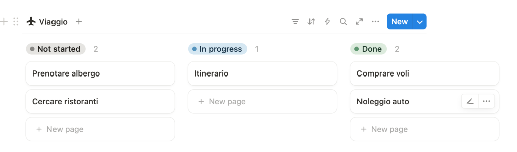 Come dicevamo, le più comuni per l’organizzazione personale sono Da fare, In corso e Completato ma puoi personalizzarle in base alle tue esigenze (es. “In attesa”, “Revisione”, “Consegnato” se lavori per progetti).